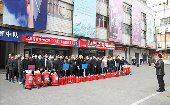 11月9日下午,鹽城招商場(chǎng)組織開展“119”消防宣傳月消防技能實(shí)操演練活動(dòng)。市場(chǎng)相關(guān)部門、駐場(chǎng)城管中隊(duì)、義務(wù)消防隊(duì)員、市場(chǎng)保潔員、商戶代表共200余人參加活動(dòng)。