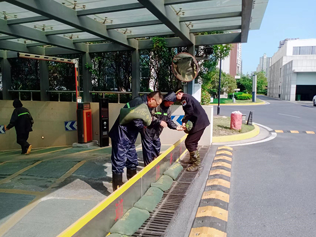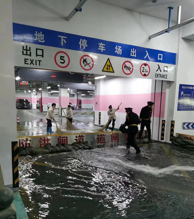 演練模擬持續(xù)暴雨導(dǎo)致地下車庫出現(xiàn)水情告急的情況。接到險情后,防汛應(yīng)急小組立即啟動應(yīng)急預(yù)案,及時疏散地下車庫內(nèi)的車輛,搬運(yùn)、安裝防洪擋板,有序壘砌防洪沙袋,并使用防水電源線啟動潛水泵進(jìn)行排水,及時清理積水區(qū)域。在搶險人員的共同努力下,險情迅速得到了控制,大家分工明確、配合默契,工作流程規(guī)范,安全保障措施到位,進(jìn)一步檢驗了防汛搶險預(yù)案的實用性和可操作性,鍛煉了防汛搶險隊伍的組織能力、快速反應(yīng)能力,提高了實戰(zhàn)水平。