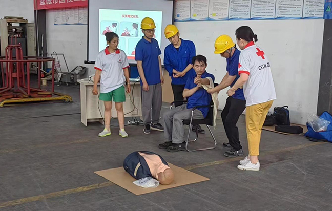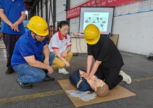 演練前,國投新材料公司“安全生產(chǎn)月”活動領(lǐng)導(dǎo)小組召開專題會議部署演練事宜,要求責(zé)任部門認(rèn)真落實(shí)任務(wù),精心設(shè)計演練方案,細(xì)化腳本、有序組織、確保質(zhì)量。演練邀請了市紅十字會講師到場指導(dǎo),圍繞工業(yè)生產(chǎn)中最容易發(fā)生的“觸電”和“機(jī)械傷害”事故展開,分別進(jìn)行了應(yīng)急救護(hù)知識培訓(xùn)、事故現(xiàn)場處置和救護(hù)技能實(shí)操練習(xí)?,F(xiàn)場人員密切配合,演練步驟環(huán)環(huán)相扣,達(dá)到了預(yù)期效果。