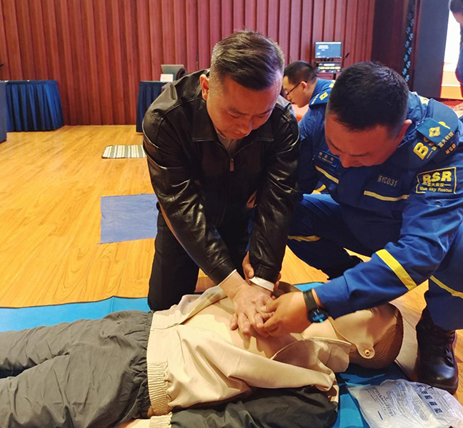 本次培訓(xùn)采取理論講解與實際操作相結(jié)合的方式。宣講員用通俗易懂的語言向大家介紹了學(xué)習(xí)急救知識的必要性、正確的急救步驟和施救措施等相關(guān)知識。在實操環(huán)節(jié),藍天救援隊的同志們通過模擬演練、一對一指導(dǎo)等形式,重點講解和演示了心肺復(fù)蘇術(shù)、海姆立克急救法、創(chuàng)傷處理等急救措施的規(guī)范操作。參訓(xùn)人員認真聆聽講解,并積極進行實操練習(xí),逐步掌握了正確操作方法。