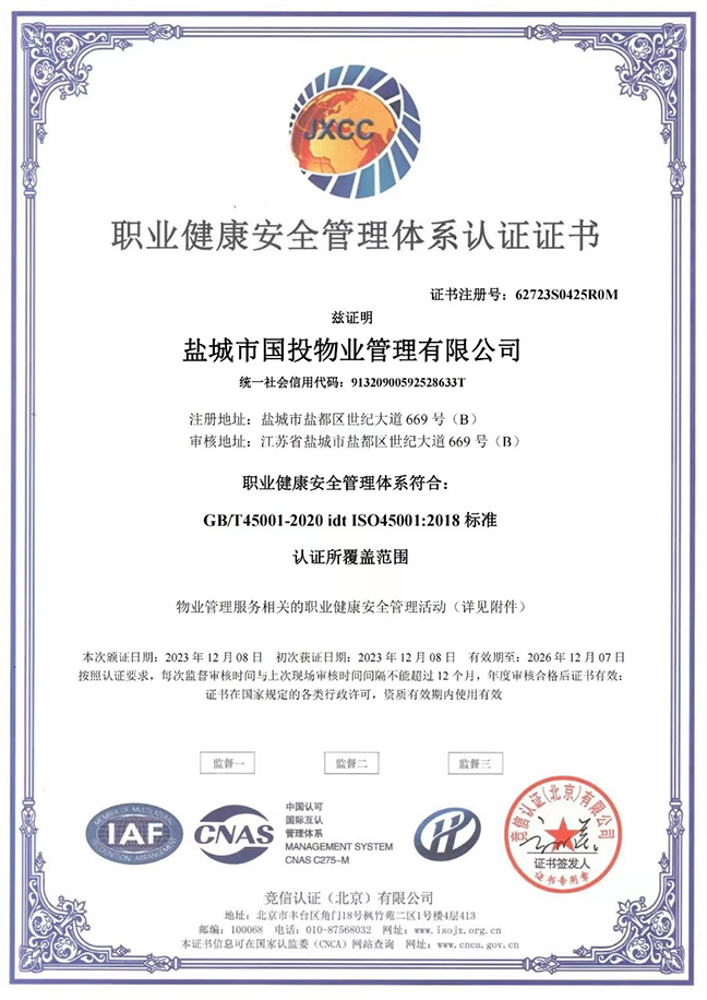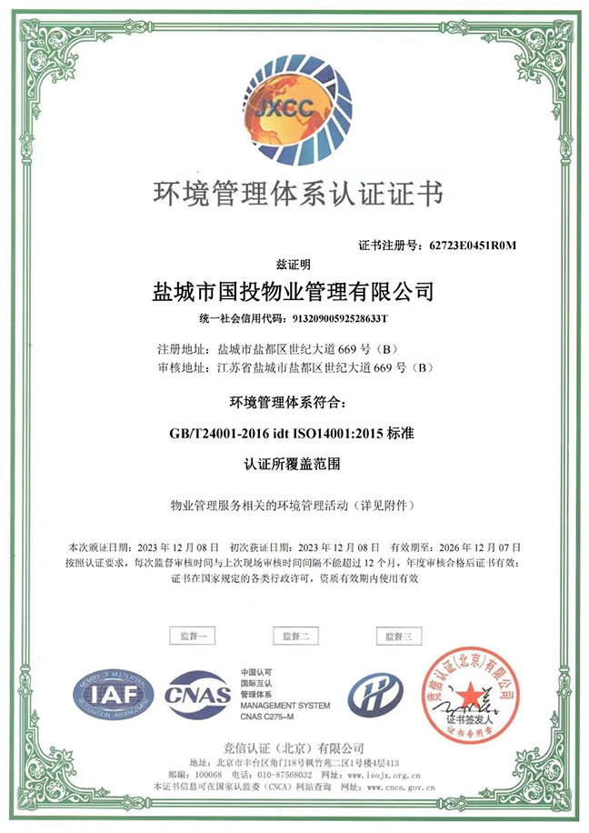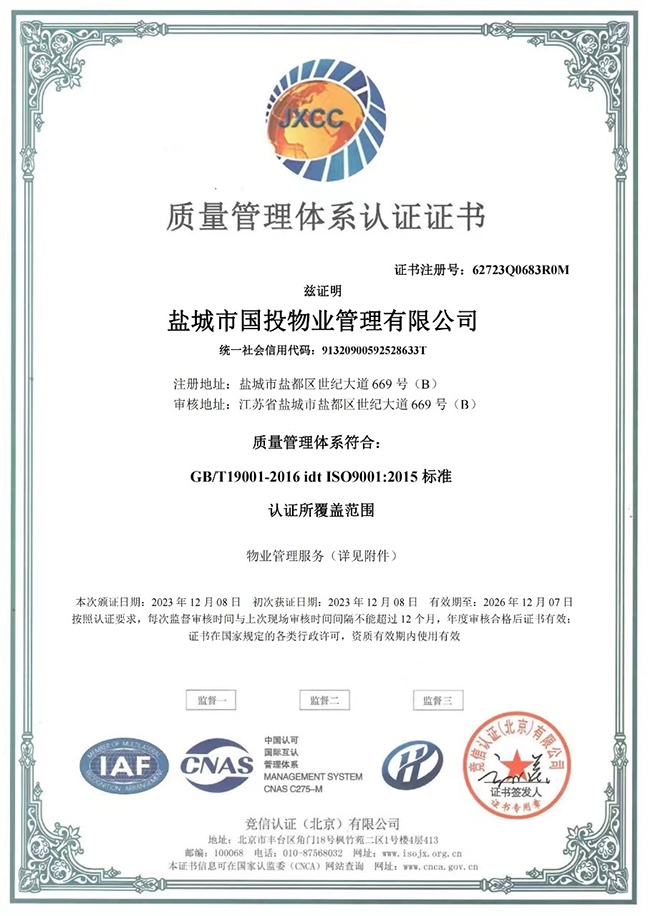 日前,鹽城國投物業(yè)公司順利取得ISO“三體系”(ISO9001質(zhì)量管理體系、ISO14001環(huán)境管理體系、ISO45001職業(yè)健康安全管理體系)認(rèn)證證書。這是公司在提升企業(yè)綜合實(shí)力過程中取得的新進(jìn)展,標(biāo)志著公司在精細(xì)化、制度化、規(guī)范化管理方面邁上新臺階。
