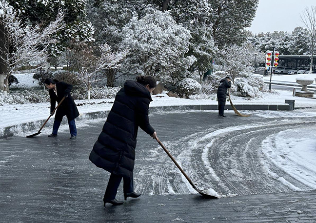 2月2日,為應(yīng)對(duì)雨雪天氣給出行帶來(lái)的不便,集團(tuán)相關(guān)單位“以雪為令”,迅速組織黨員、職工和志愿者們開(kāi)展掃雪除冰行動(dòng)。