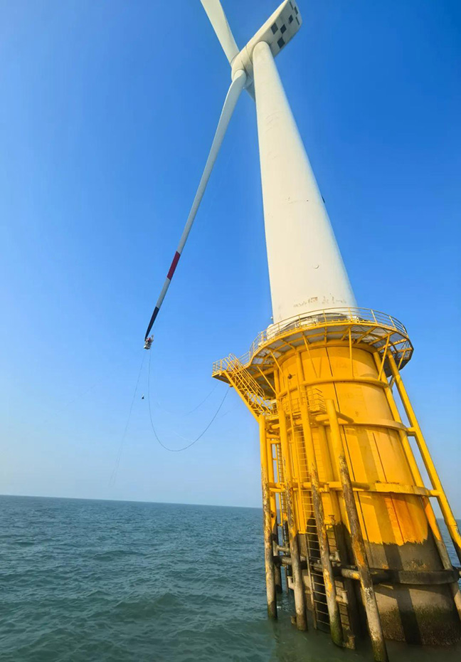 葉片前緣腐蝕每年可能造成發(fā)電量損失5%,有時可能損失25%以上,“葉片飛人”的消缺任務(wù)非常重要。正是這些 “葉片飛人”在高溫下的堅守,及時排查并消除了風(fēng)機(jī)葉片的故障隱患。他們是風(fēng)機(jī)葉片的“守護(hù)神”,用汗水和專業(yè)在烈焰高空詮釋著責(zé)任和擔(dān)當(dāng),用實際行動保障了海上風(fēng)機(jī)的穩(wěn)定運行,為迎峰度夏的電力供應(yīng)筑牢了防線,為清潔能源的高效利用貢獻(xiàn)著自己的力量。
