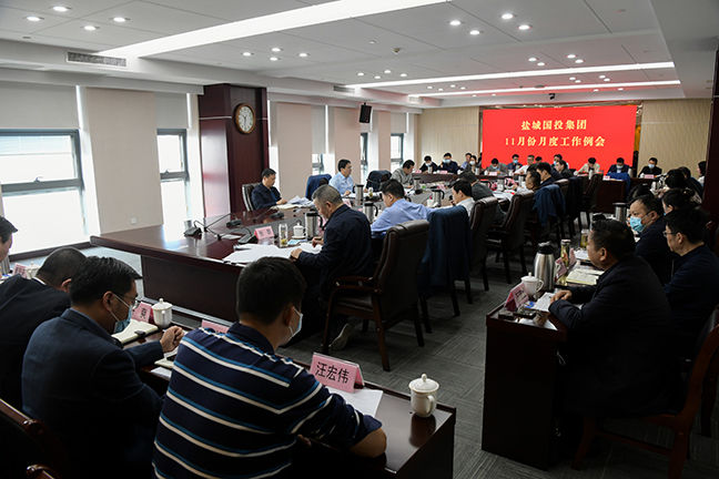 11月5日,鹽城國投集團(tuán)召開11月份月度工作例會(huì)。集團(tuán)黨委書記、董事長張林海主持會(huì)議并作工作部署。國投集團(tuán)黨委成員,各部門、直屬單位主要負(fù)責(zé)人參會(huì)。