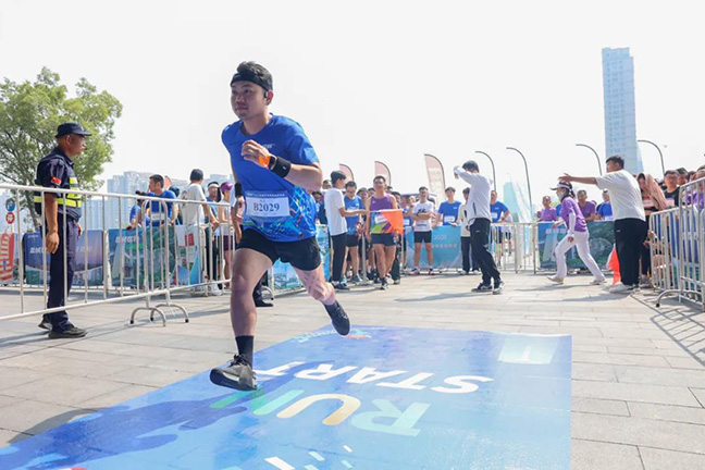 上午8點(diǎn)55分,選手們?cè)诮∩斫叹殠ьI(lǐng)下跳起了互動(dòng)熱身舞蹈,現(xiàn)場氛圍被點(diǎn)燃。“3、2、1,開跑!”9點(diǎn)整,開幕式現(xiàn)場領(lǐng)導(dǎo)嘉賓共同鳴槍,選手們?cè)谥驹刚叩囊龑?dǎo)下,如離弦之箭般,依次沖進(jìn)鹽城國貿(mào)中心(先鋒中心)大樓的樓道,開啟了這場垂直向上的征程?!洱堯v虎躍》《春華秋實(shí)》《戰(zhàn)馬奔騰》《月亮代表我的心》……在蘇科民族管弦樂團(tuán)老師們的專業(yè)演奏下,開跑現(xiàn)場氛圍緊張而溫馨。