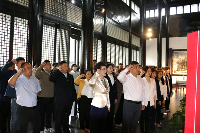 本次活動以“踐行‘三個務(wù)必’ 庚續(xù)紅色血脈”為主題?;顒又?,4個基層黨組織的黨員干部職工首先來到新四軍重建軍部舊址(泰山廟),從老照片、文獻、歷史實物中深入了解當年新四軍在艱苦環(huán)境中浴血奮戰(zhàn)、英勇抗敵的光輝歷程,感受革命先烈們忠貞不渝的愛國主義情懷。在紀念館大廳,全體黨員面向黨旗重溫入黨誓詞,表達不忘初心、牢記使命的堅定信念。